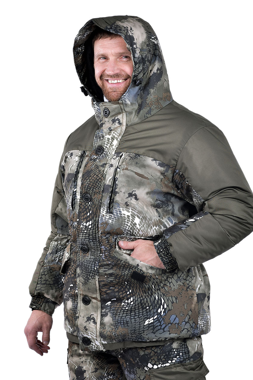 ➠ Куртка: центральной застежкой на молнию, ветрозащитная планка на шести канадских пуговиц. На груди прорезные карманы на молнии. Нижние карманы с фигурным клапаном, накладные. с центральной застежкой на молнию, с ветрозащитной планкой, застегивающаяся на шесть канадских пуговиц. На груди прорезные карманы на молнии. Два нижних накладных кармана с фигурным клапаном. Рукава с фигурными налокотниками, выше расположены накладные карманы с фигурными клапанами.