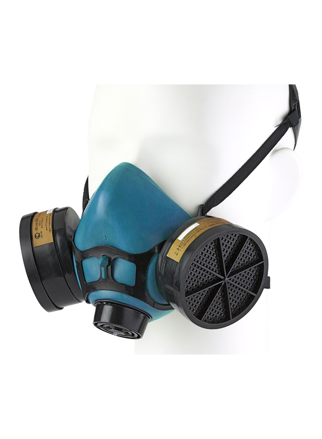 Модель: полумаска из мягкого гипоаллергенного эластомера с двумя сменными фильтрами А1В1. Герметичная изоляция по всей линии обтюрации. Регулируемое оголовье.