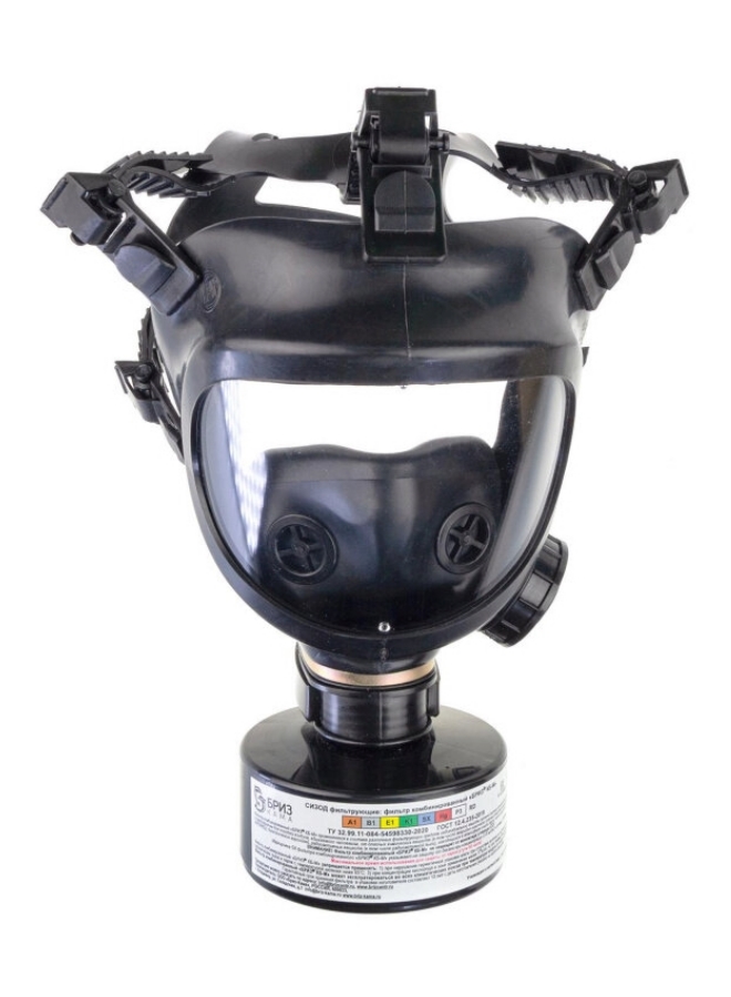 Комплектация: маска изолирующая «БРИЗ®-4301М (ППМ)» категории 2, противогазоаэрозольный комбинированный фильтр «БРИЗ® КБ-М» A1B1E1K1SXHgP3 R D, сумка для противогаза, руководство.