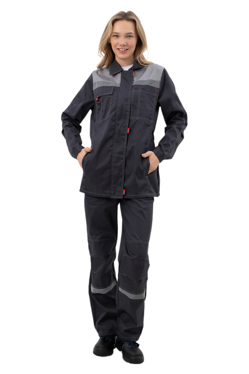 Костюм с лентой ФИО что позволяет идентифицировать костюм работника. Усилительные накладки для защиты костюма от истирания: в зоне локтя и колена на брюках.