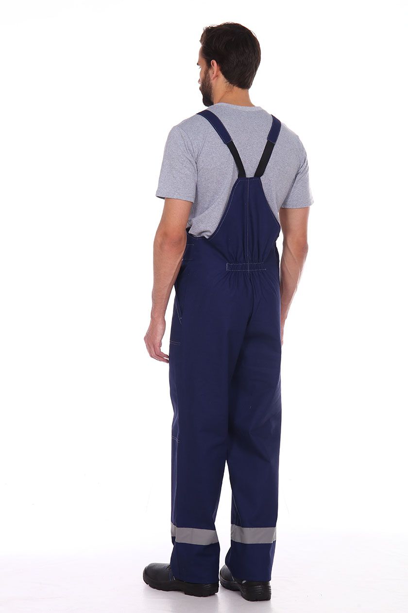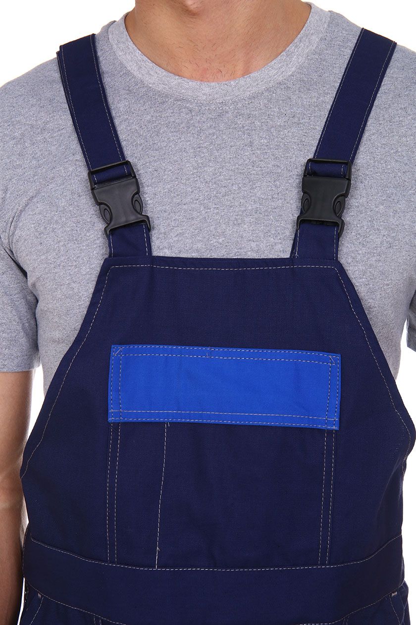 ➠ Полукомбинезон с застежкой гульфика на тесьму «молния» и в правом боковом шве на пуговицы. Накладные карманы с наклонным входом. В области коленей усилительные накладки. На груди накладной карман с клапаном. По низу брюк СОП 50 мм.