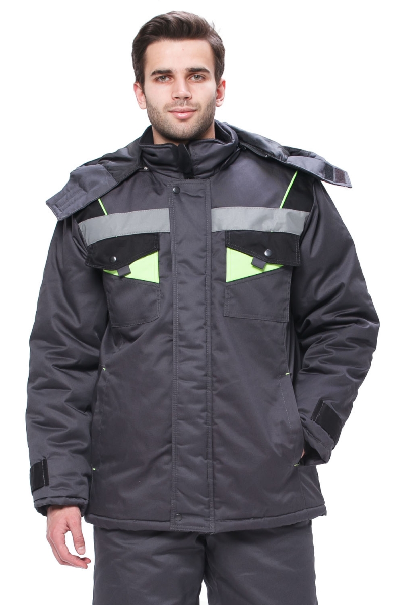 ➠ Куртка прямого силуэта, удлиненная, воротник стойка, капюшон, центральная застежка на молнию, ветрозащитный клапан, верхние фигурные карманы и нижние карманами в швах.