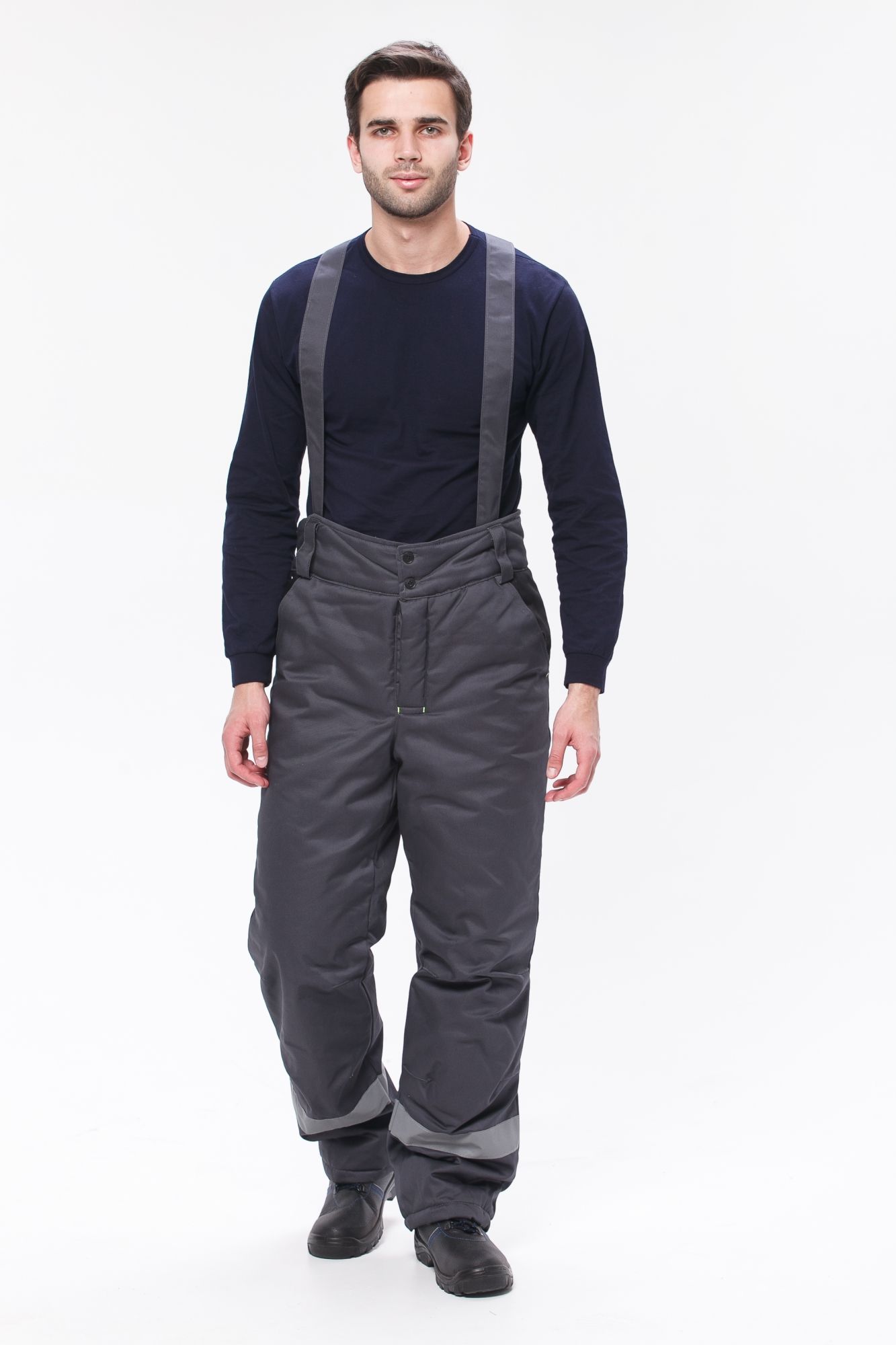 ➠ Брюки прямого кроя, с застежкой гульфика на молнию, притачным поясом, застегивающимся на пуговицы, со шлёвками и съемными бретелями.
